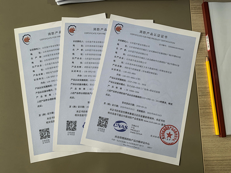 近日,山東藍(lán)升泵業(yè)有限公司進(jìn)行了一年一度的國(guó)家公安部消防產(chǎn)品合格評(píng)定。再次順利通過(guò)廠檢,獲得CCCF產(chǎn)品消防認(rèn)證!