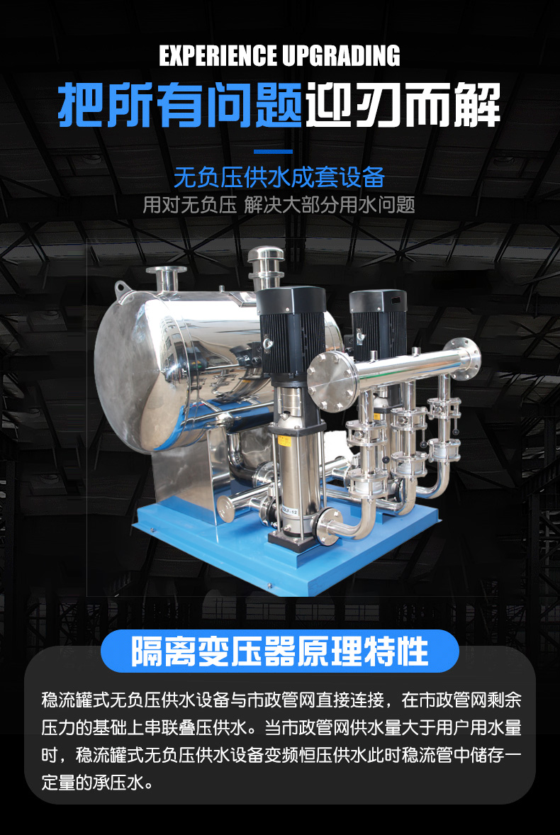 恒壓變頻供水設(shè)備/二次增壓供水設(shè)備是一種廣泛應(yīng)用于高層建筑供水的設(shè)備,其作用是在自來水壓力不足時,通過加壓設(shè)備增加水壓,以滿足用戶的需求。恒壓變頻供水設(shè)備/二次增壓供水設(shè)備具有節(jié)能、環(huán)保、安全等優(yōu)點,是現(xiàn)代城市供水的重要組成部分。