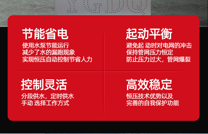 變頻控制柜內(nèi)在質(zhì)量?jī)?yōu)良,外形美觀耐用,安裝操作方便,是各類(lèi)水泵安全可靠的伴侶。