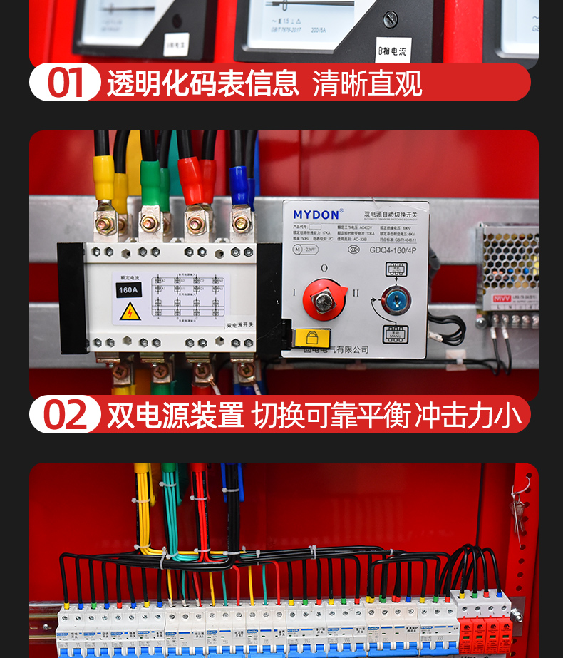 3. 雙電源動(dòng)力柜安全可靠:雙電源柜在設(shè)計(jì)和制造時(shí),嚴(yán)格按照國(guó)際和行業(yè)標(biāo)準(zhǔn)進(jìn)行,具備防雷、防潮、防腐和防火等特性,可以保證安全可靠的運(yùn)行。